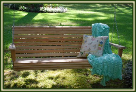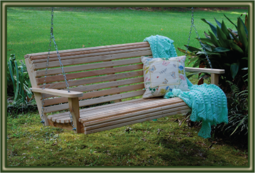 Cypress Moon creates beautiful, unfinished wooden furniture that is designed for strength and weather tolerance. Handmade from Louisiana Cypress trees, these Rollback Porch Swings are naturally beautiful and will accent any front porch! Cypress Moon swings are heavily constructed with slats that are 1 inch thick and 1 3/4 inches wide routered (no sharp edges). Each slat is finish sanded on all sides and ends for your safety and comfort . In addition, these swings have 4 supports across the back AND 4 across the bottom. Few porch swings are built with this kind of quality support system! Each purchase includes all necessary hardware for a standard porch installation: S-hooks, chains, bolts, and eyebolts. As with all Cypress Moon Furniture, price includes FREE SHIPPING! If the more traditional look is what you desire, you might check out our Classic Porch Swing designs.